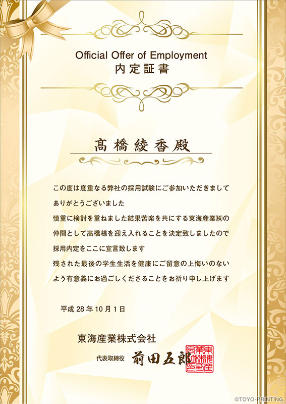 枚 金消し賞状額 【ゴールド枠の額縁】(B5,A4判